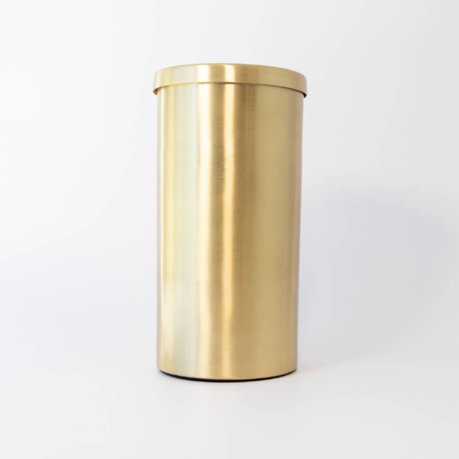 The Brass Cylinder Urn with a satin finish is a unique twist on the classic tube urn for a minimalist home.